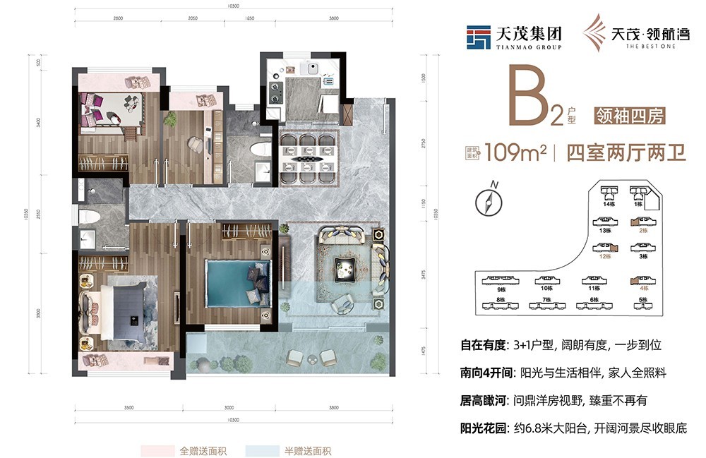 B户型 4房2厅2卫 建筑面积109㎡