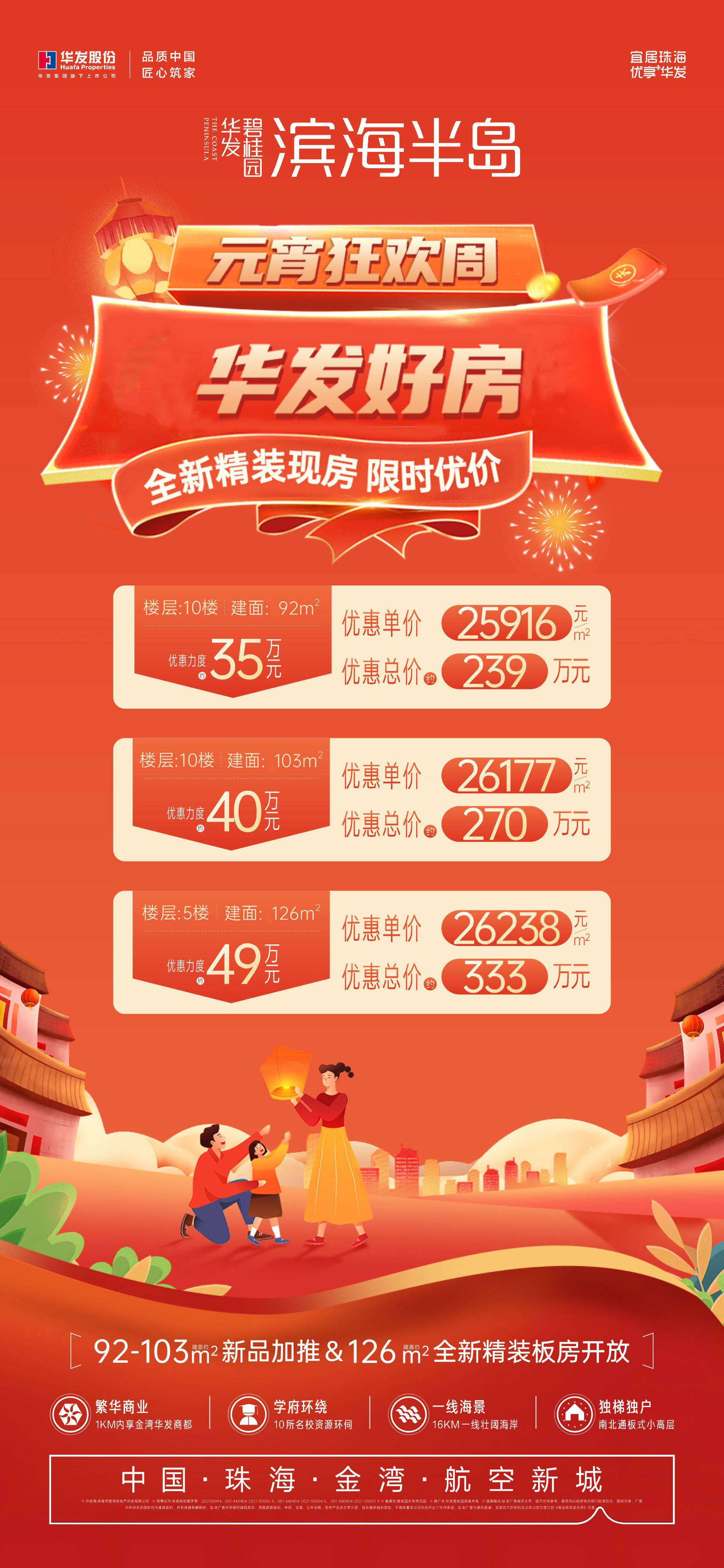 【情人节特惠】珠海华发碧桂园滨海半岛特惠总价234万元/套