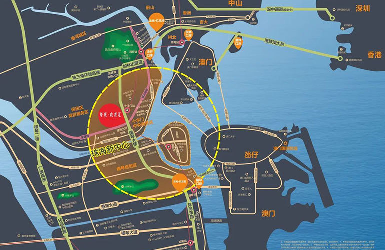 项目位于珠海保十琴一体化区域的保税区,处于南湾大道及宝琴路发展轴交汇处,项目往北800米就是港珠澳大桥连接点出入口,往南经横琴大桥可到达横琴,东边紧邻保税区贸易展示中心,经南湾大道可到达十字门中央商务区,西边是未来预留的商业发展用地,项目总占地面积5万平方米,总建面33万平方米,由2栋超高层及6栋塔楼组成,总户数3000户,分两期开发,2、3、4栋为期,其余为二期,整体采用围合式布局,布局方正,建筑间距达50米。每栋建筑“L”型,比其他回字形的办公产品更利于通风采光。