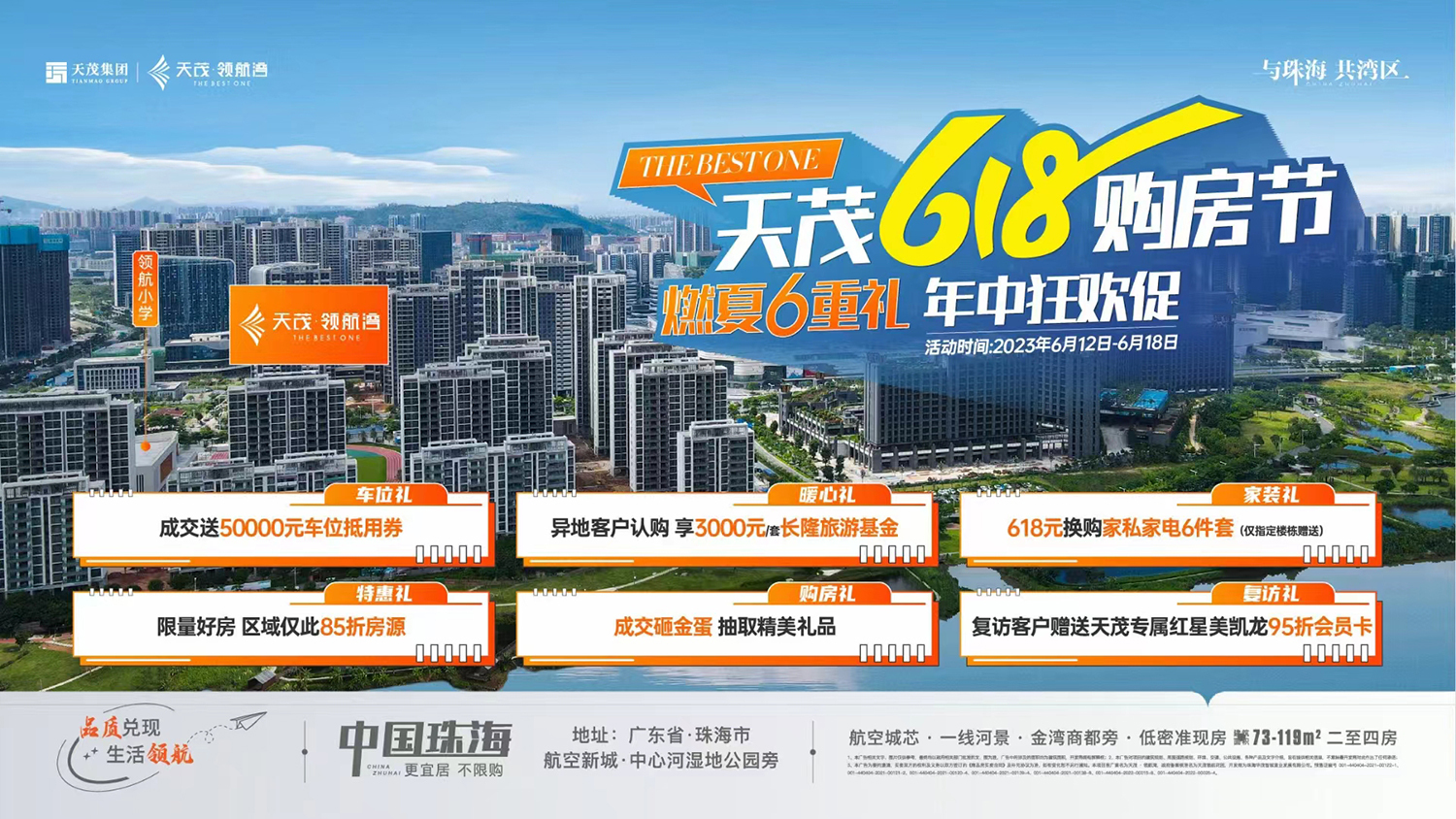 【年中大促】天茂618购房节, 珠海天茂领航湾购房享85折优惠