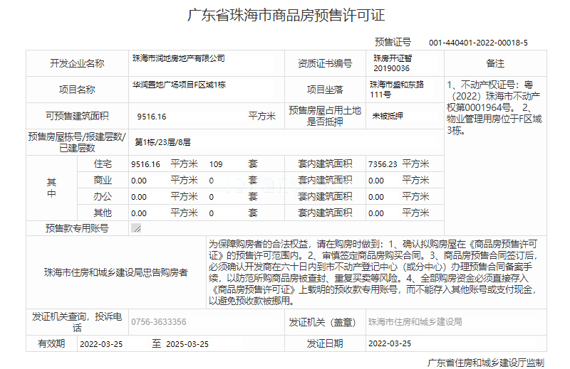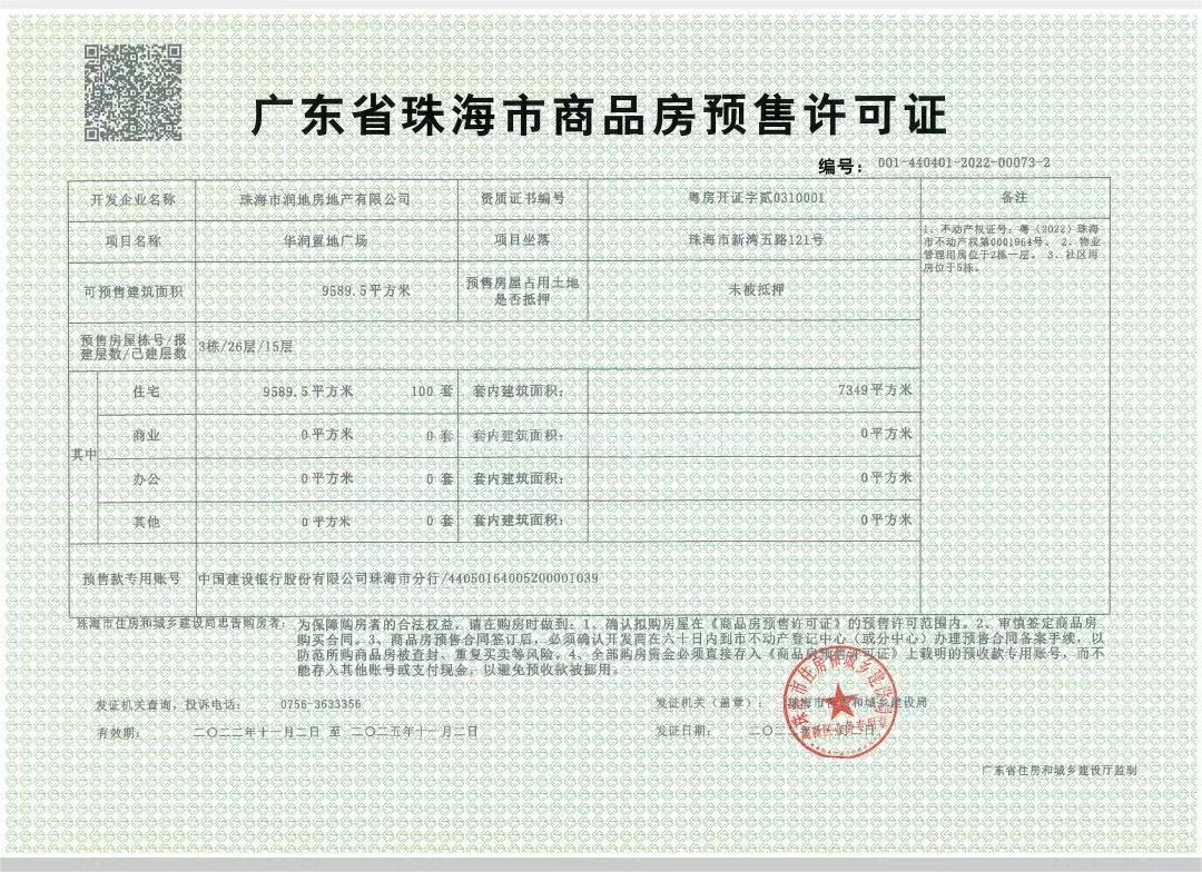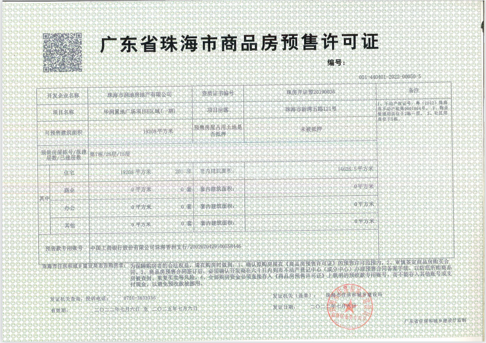 预售证号: 001-440401-2022-00050-5