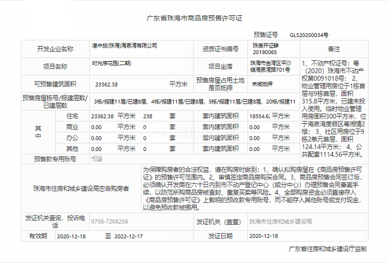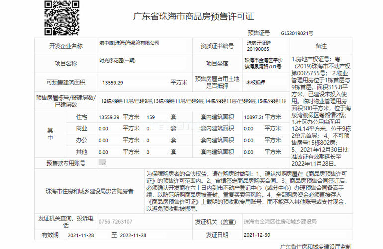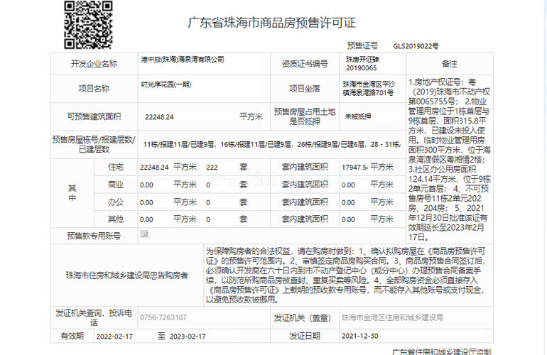 预售证号: GLS2019021号
