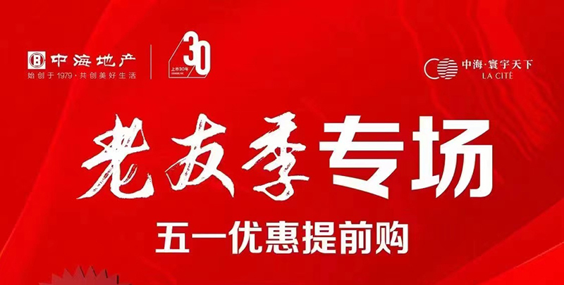 珠海中海寰宇天下五一优惠提前购,推出12套特价房源,活动户型建筑面积86.93㎡-128.89㎡,其中D-4-706号房原总价343万元/套,现优惠总价340.9万元/套,活动时间截至至2022年5月5日。 [详情]