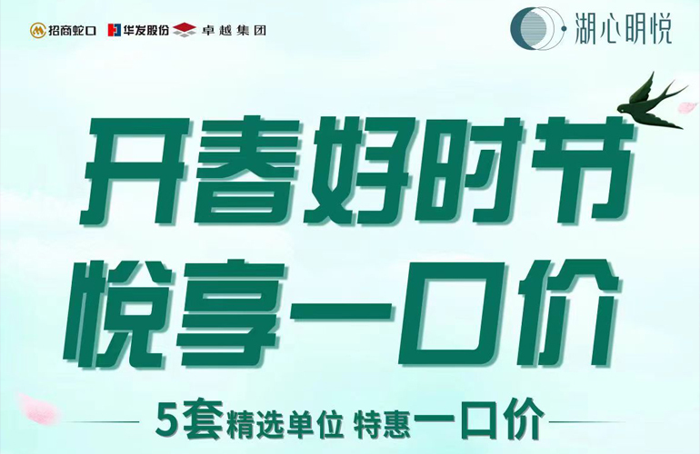 珠海招商华发卓越湖心明悦开春好时节,悦享一口价。项目推出5套特惠房源,目前仍有4套在售,活动户型建筑面积92.7-105.54㎡,其中3-1-303房建筑面积92.7㎡,原单价17494元/㎡,特惠单价15328元/㎡,其他房源具体优惠详情见下图,一房一价,活动时间:2023年2月16日至2023年2月28日,具体时间以房源出售情况为准,售完即止。 [详情]